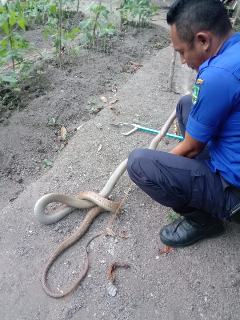 Rabu (13/07/2022) Pukul 17.30 Wib, Pos Damkar Bengkalis telah mengevakuasi seekor ular manaw(king cobra) di Jalan Jl h.usmad RT 11 /RW 06