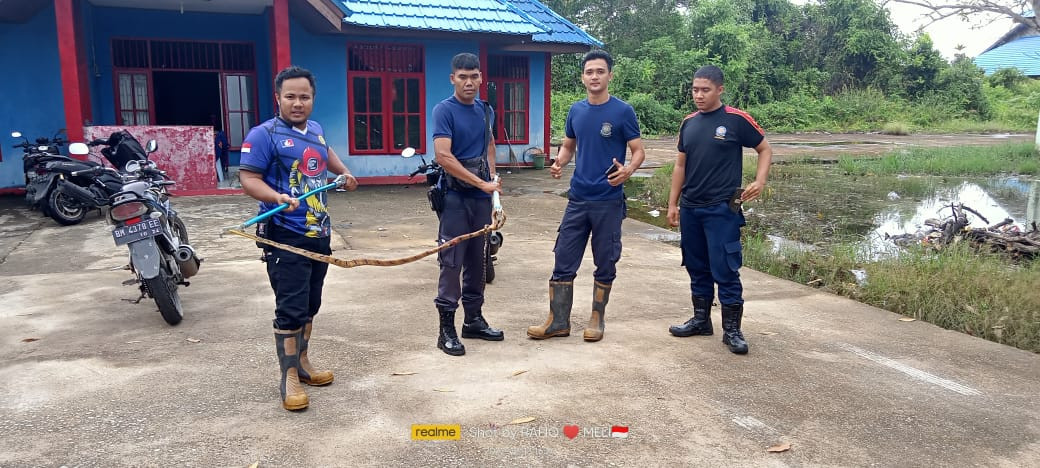 Bengkalis, Selasa 13 Desember 2022- Pos Damkar Kecamatan bantan telah mengevakuasi ular manau di perkarangan warga (13/12/2022). Sukarno hatta, Desa Selatbaru Kecamatan Bantan. Petugas Damkar yang telah menerima laporan langsung melakukan evakuasi Ketua Regu Sunardi Tim yang melakukan Evakuasi Fire & Rescue Regu 04 Bantan.
