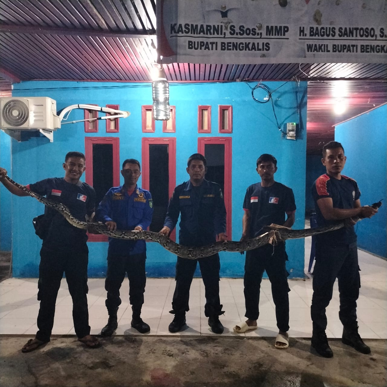 Bengkalis, Rabu 14 Desemeber 2022-Pos Damkar Kecamatan rupat telah mengevakuasi ular sawa di rumah warga (14/12/2022) dijalan tanjung kapal Kelurahan tanjung kapal Kecamatan Rupat. Petugas Damkar yang telah menerima laporan langsung melakukan evakuasi. Tim yang turun dalam kejadia tersebut Fire & Rescue Regu 02 rupat.