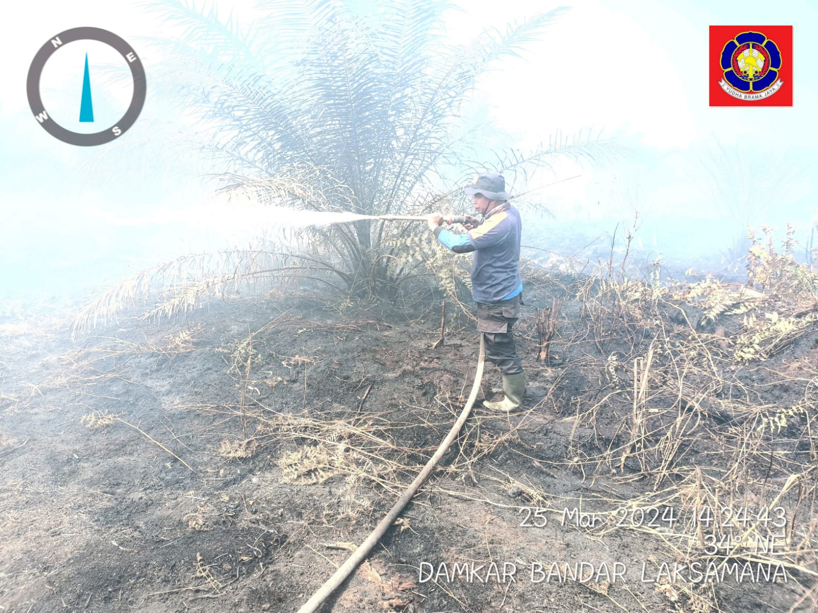 Damkar, Bengkalis - Petugas Pemadaman Kebakaran (Damkar) Kabupaten Bengkalis yang bermangkal di Pos kecamatan Bandar Laksamana melakukan pemadaman kebakaran lahan, Senin (25/03/24) sekitar 17.00 WIB.