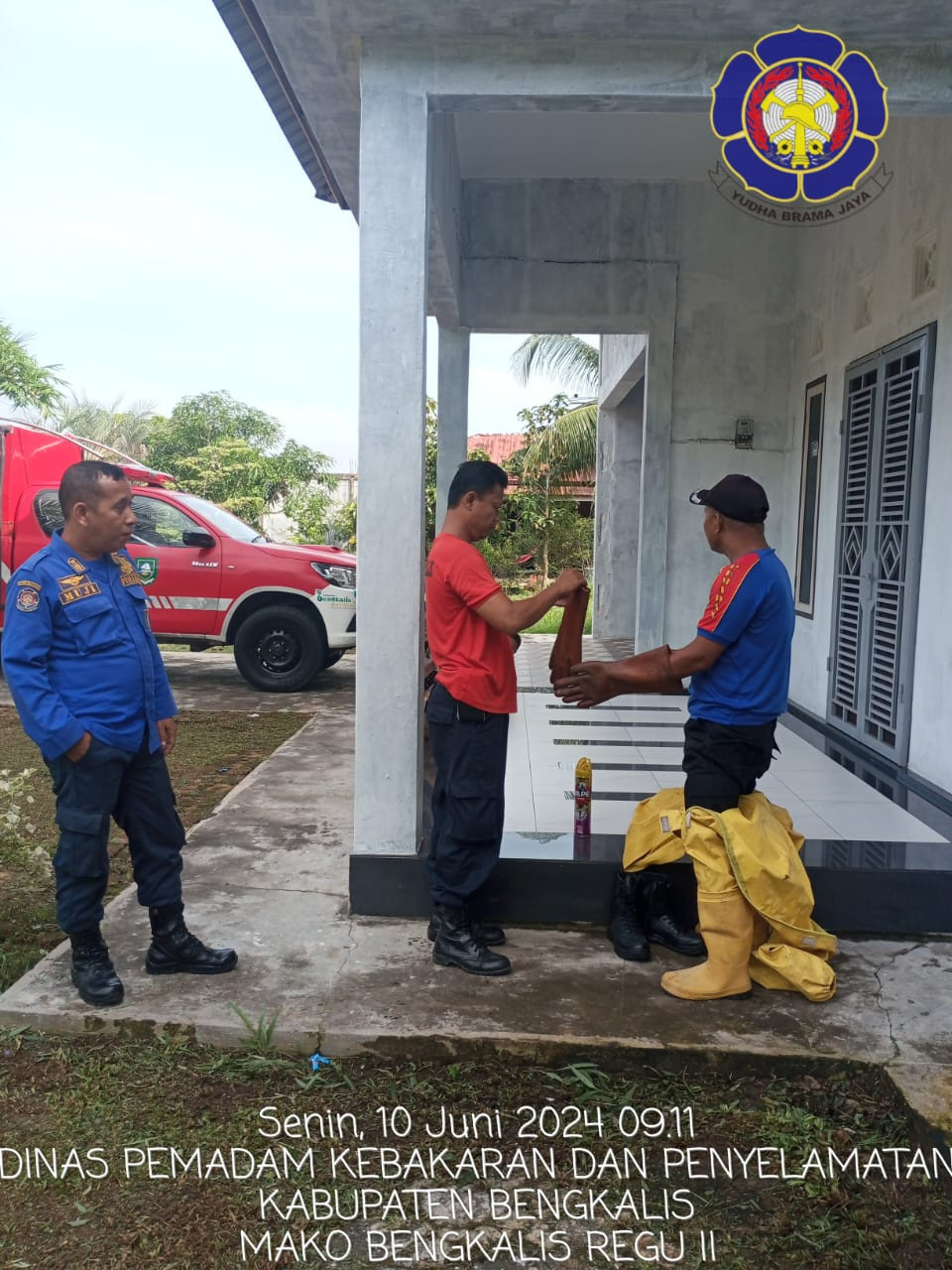 Setelah menerima laporan dari masyarakat personil dari anggota Mako Damkar Bengkalis menuju ke lokasi kejadian untuk melakukan evakuasi.