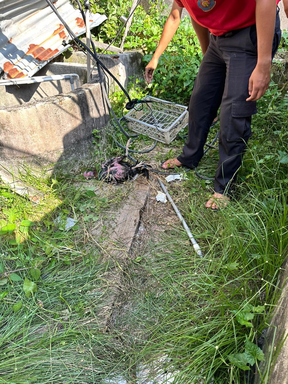 Petugas menyebut, pihaknya menerima laporan dan langsung ketempat lokasi untuk melakukan evakuasi pukul 15:15 s/d 15: 45 wib dengan kemampuan para petugas dari petugas DamkarAnggota regu 02.