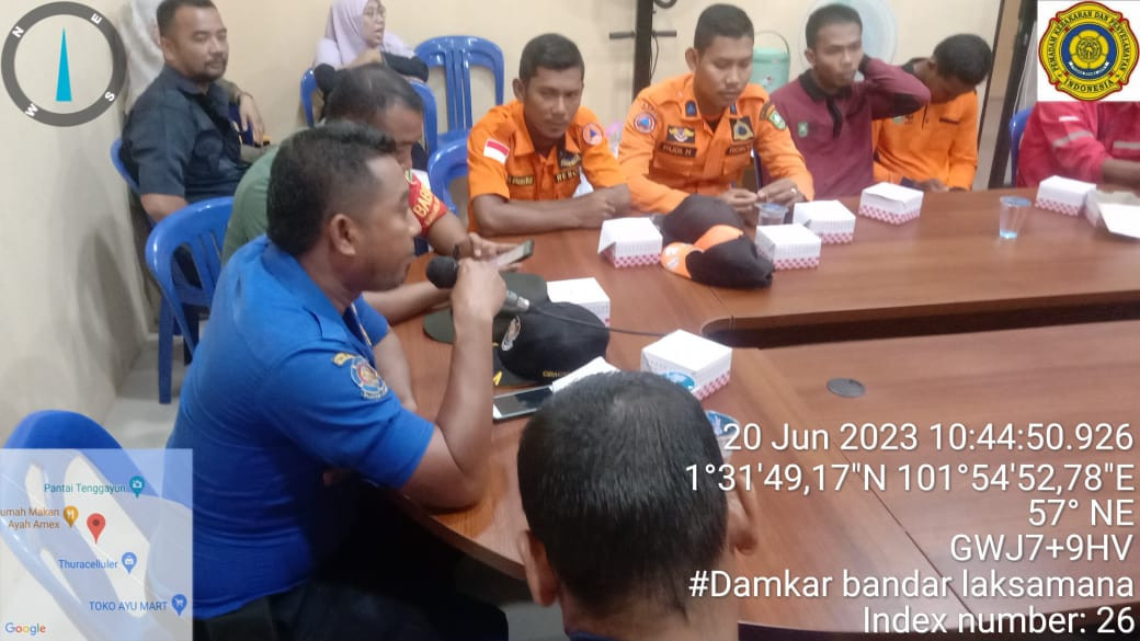 Bengkalis, (20/06/23) Giat Anggota Pos Damkar Kecamatan Bandar Laksamana Rapat Koordinasi Karlahut, Penanganan Dan Penanggulangan Kebakaran Hutan Dan Lahan di Kantor Camat Bandar Laksamana.Tim yang mengikuti koordinasi kaarlahut tersebut adalah Pak Camat Bandar Laksamana, Koramil, kapolsek, Damkar, Bpbd, Rpk Perusahaan, Manggala Agni, Satpol PP, Mpb.