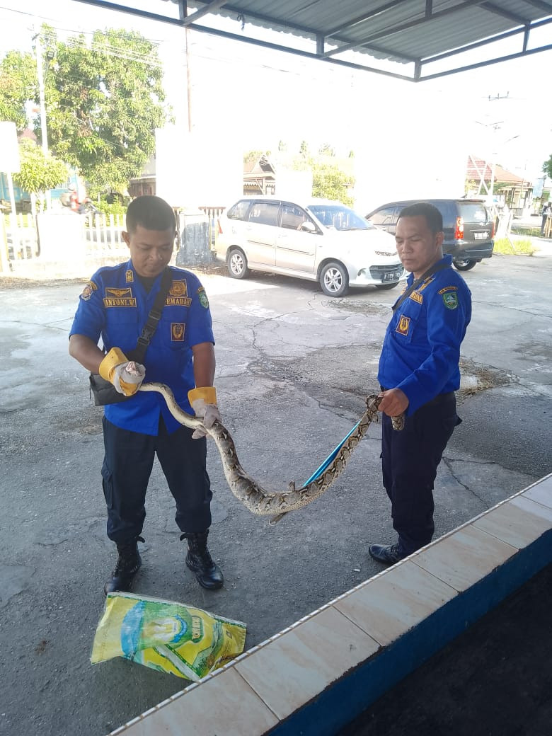 Salasa (10/05/2022) Pukul 07.30 Wib, Upt Damkar Bukit Batu mengevakuasi seekor ular di Jalan Sudirman Kelurahan Sungai Pakning, Kecamatan Bukit Batu Kabupaten Bengkalis. Petugas Damkar yang telah menerima laporan langsung melakukan evakuasi, tim yang turun dalam kejadian tersebut Fire & Rescue Regu IV Kec. Bukit Batu, Ketua Regu Anton Wijaya.