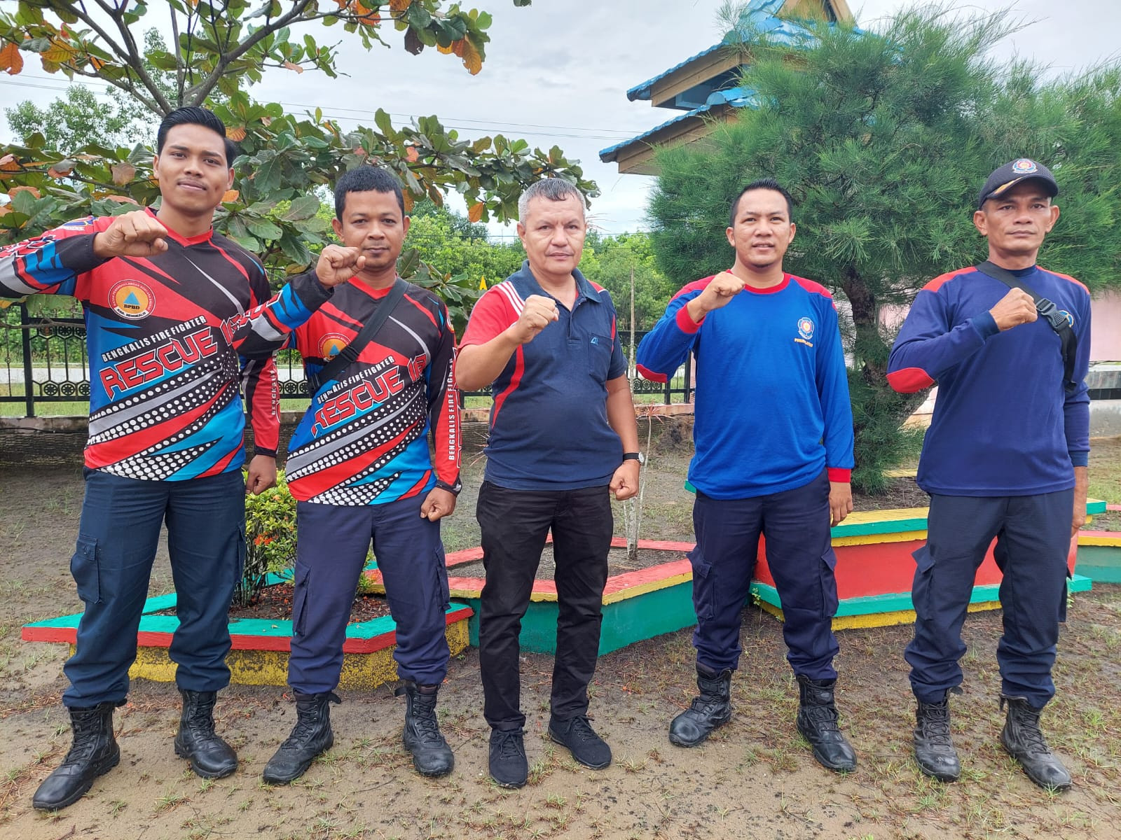 UPT Damkar Bukit Batu melakukan gotong royong di halaman kantor camat Bukit Batu dalam rangka persiapan untuk upacara HUT RI 17 agustus 2022.