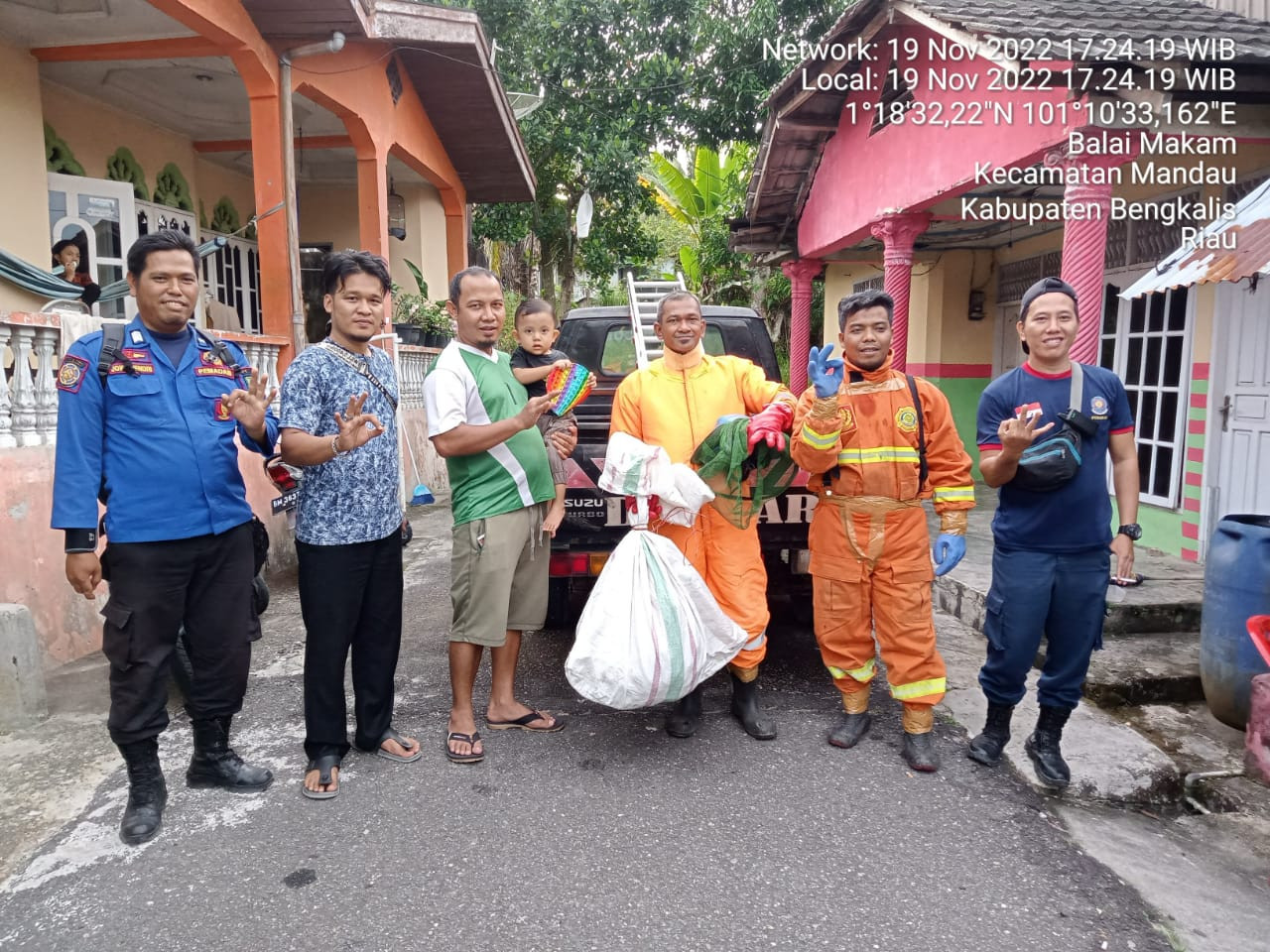 Bengkalis, Sabtu 19 November 2022- UPT.Damkar Kec.Mandau telah mengevakuasi sarang tawon vespa dijalan pipa air bersih perumnas tahap 1 blok 12 Rt 03/Rw 03 Desa Balai Makam. Petugas Damkar yang telah menerima laporan langsung melakukan evakuasi, tim yang turun dalam kejadian Danru Joko anggota regu 03.