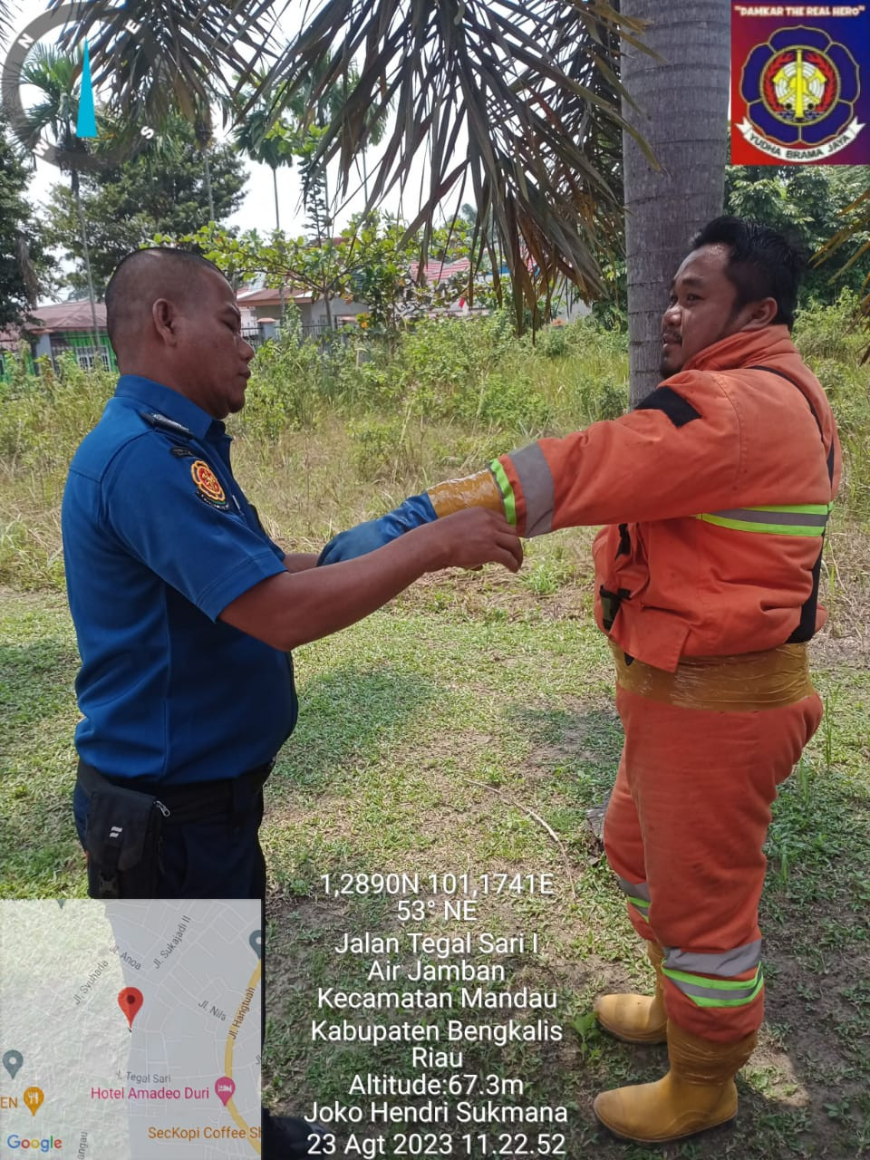 Bengkalis, (23/08/23) UPT Damkar Kecamatan Mandau evakuasi tawon Vespa pukul 10:50 Wib di jalan Tegal Sari 1 Hangtuah Rt 02/Rw 20 Kelurahan Air Jamban Kecamatan Mandau. Tim yang turun dalam kejadian tersebut Zulkarnain Anggota regu 03.