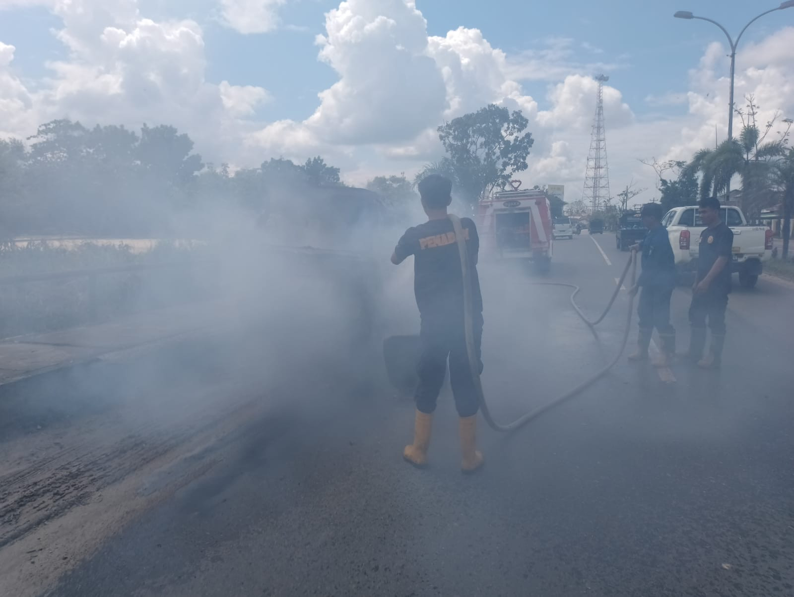 Bengkalis - UPT Damkar Kecamatan Mandau melakukan pemadaman Kebakaran 1 buah unit mobil angkot/oplet (21/12/23) pada hari kamis di jalan Hangtuah, Kelurahan balik alam Kecamatan Mandau. Tim yang turun dalam kejadian tersebut Anggota Mandau regu 01.