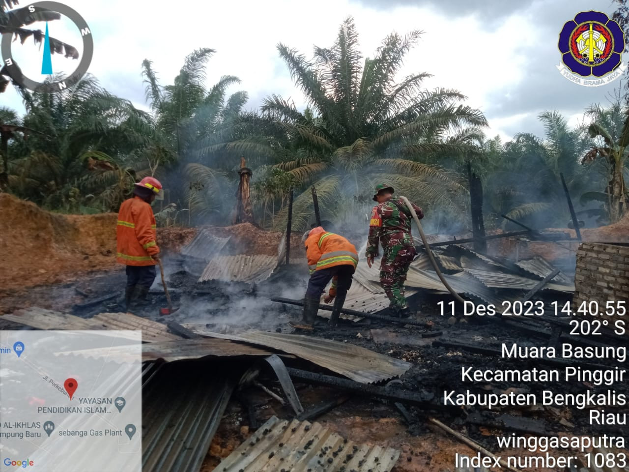 Bengkalis - Upt Damkar Kecamatan Pinggir berhasil memadamkan kebakaran yang melahap sebuah rumah papan ukuran 3x6m di jalan Banjaran Rt 2/Rw 4, Desa/Kelurahan Muara Basung Kecamatan Pinggir, Senin (11/12/23). Tim yang turun dalam kejadian tersebut Anggota Regu 1 damkar Kecamatan Pinggir, Babinsa dan di bantu Masyarakat.