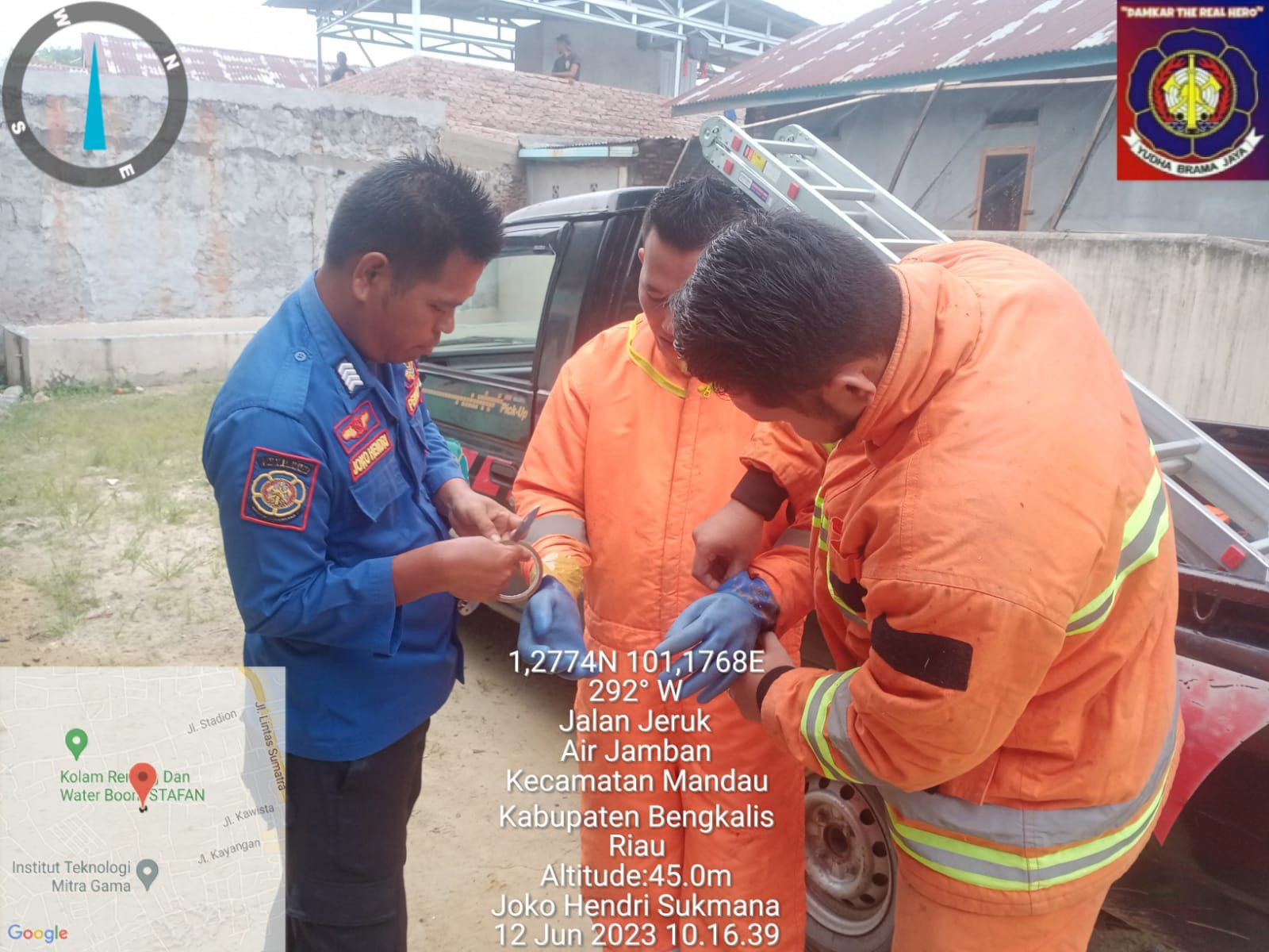 Bengkalis, UPT Damkar Kecamatan Mandau melakukan evakuasi tawon vespa ( 12/06/23) pukul 08:30 Wib di jalan Stadion Gg karet, Rt 06/Rw 15, Kelurahan Air Jamban, Kecamata mandau. Tim yang turun dalam kejadian tersebut Danru Joko, Anggota regu 03.