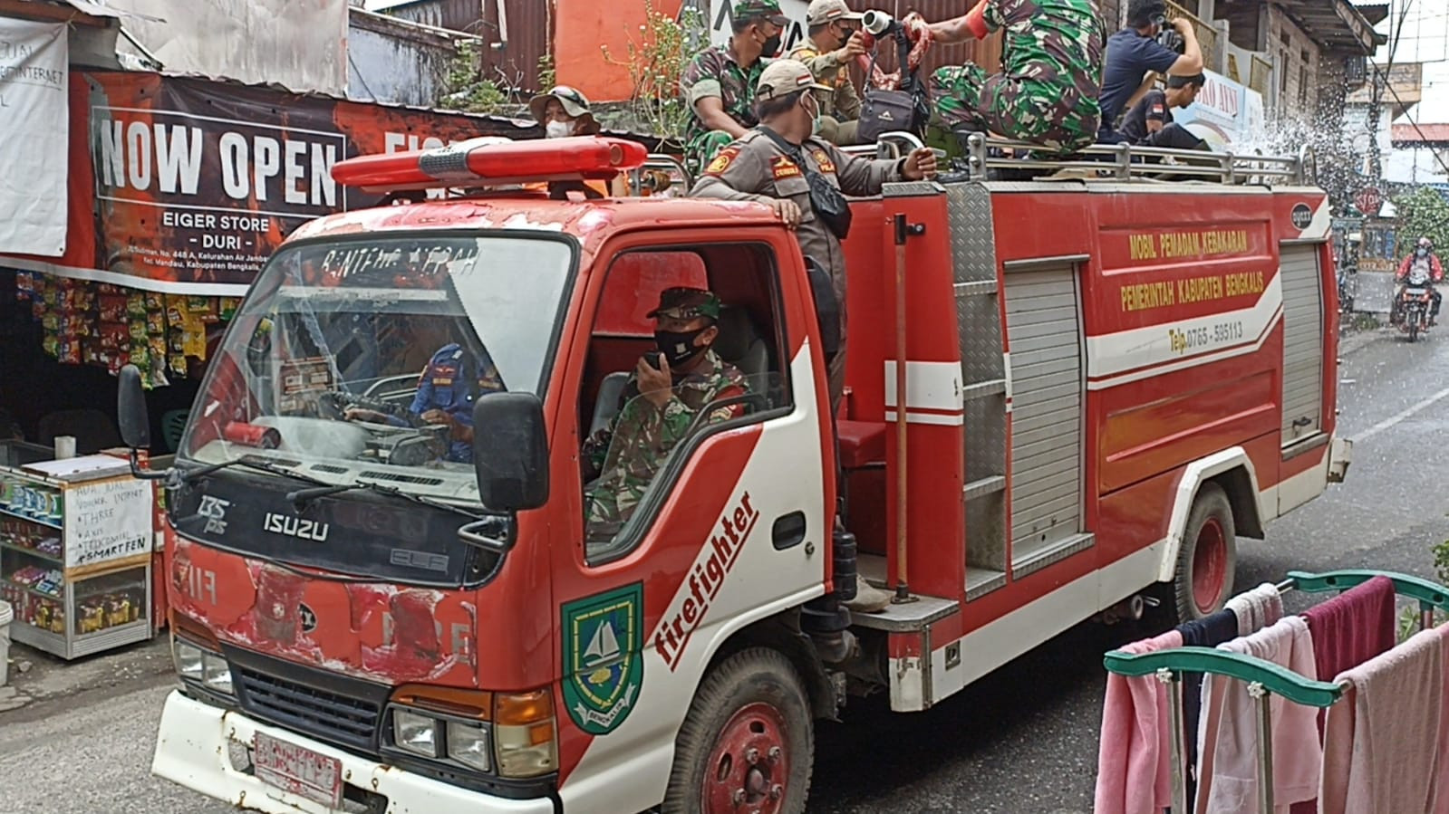 Rabu (14/02/2022) Pukul 08:30wib UPT. Damkar Kecamatan Mandau telah melakukan penyemprotan desinfektan, lokasi penyemprotan desinfektan pertama di Jalan Pertanian sampai jalan tribrata Hangtuah kelurahan duri barat. lokasi penyemprotan desinfektan kedua di Jalann Mandau sampai dengan jalan Tegal Sari Hangtuah kelurahan air jamban Kecamatan Mandau Kabupaten Bengkalis. . Kegiatan selesai penyiraman jam 12:30 wib, Tim yang Turun dalam kegiatan tersebut , Danru joko Anggota Damkar Mandau, Pemerintah kecamatan Mandau, Koramil 0303 Mandau, Dinas kesehatan, Satpol PP kec. Mandau