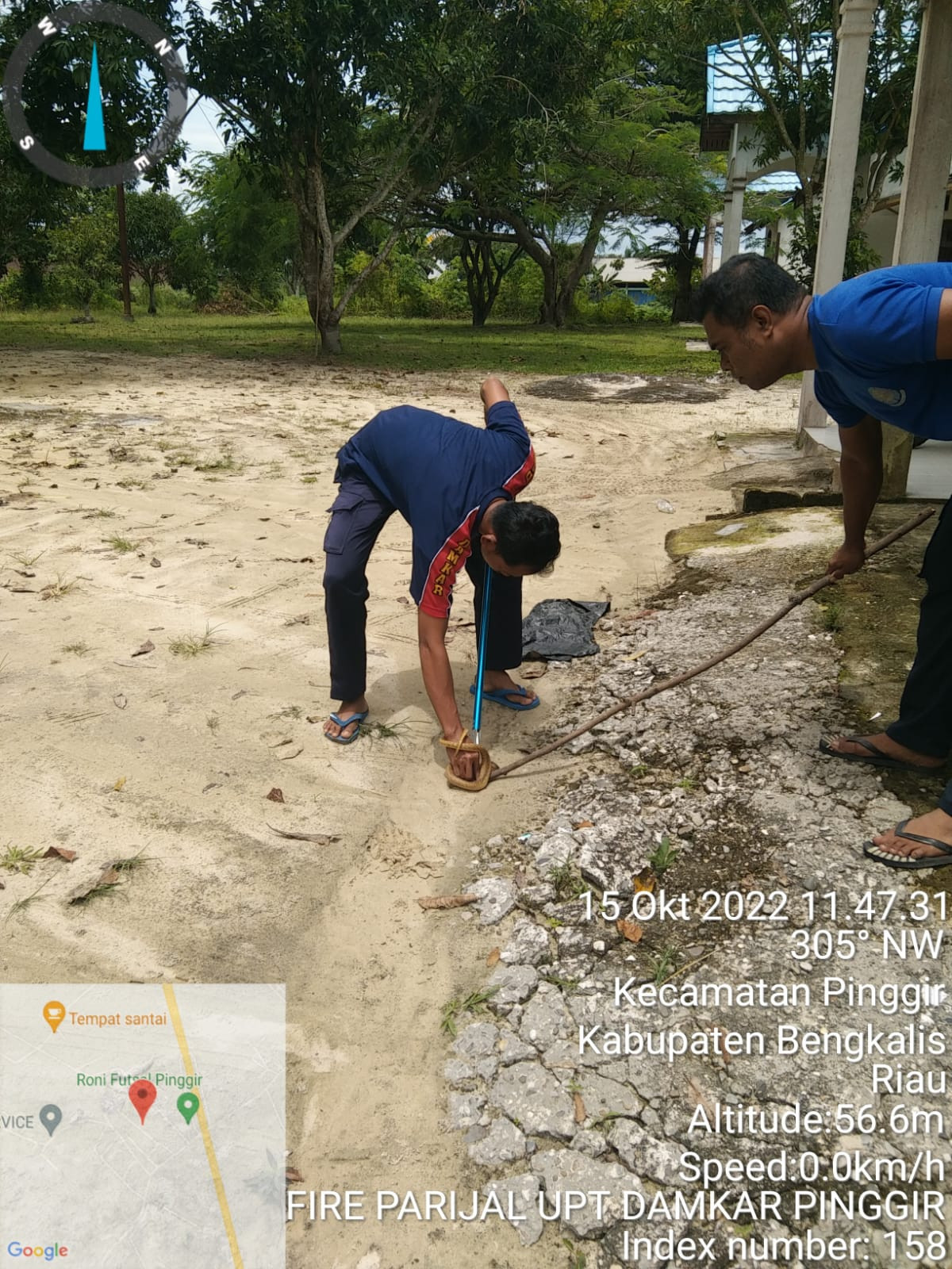 Desa pinggir Kecamatan Pinggir. Petugas Damkar yang telah menerima laporan langsung melakukan evakuasi, tim yang turun dalam kejadian tersebut Regu 2 Ketua regu Abdul Rahman.