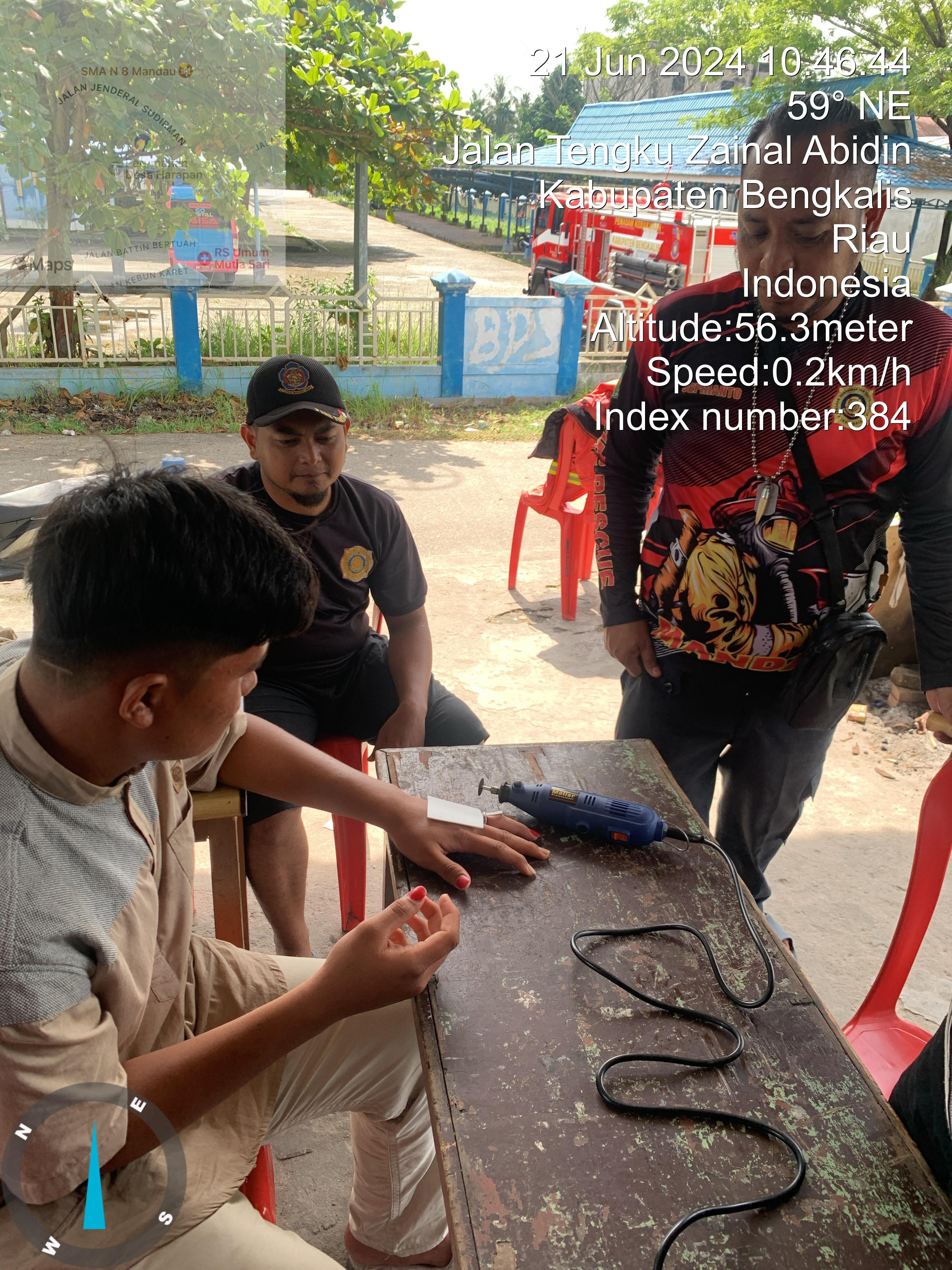 Bengkalis - UPT Damkar Mandau Kembali melakukan evakuasi pelepasan cincin pada jari warga (M.satria 16 ) pada Jum'at , (21/6/24) yang tersangkut di jari manisnya. (M.satria) mendatangi langsung UPT Damkar Mandau dengan maksud meminta bantuan pertolongan untuk melepaskan cincin di jarinya.