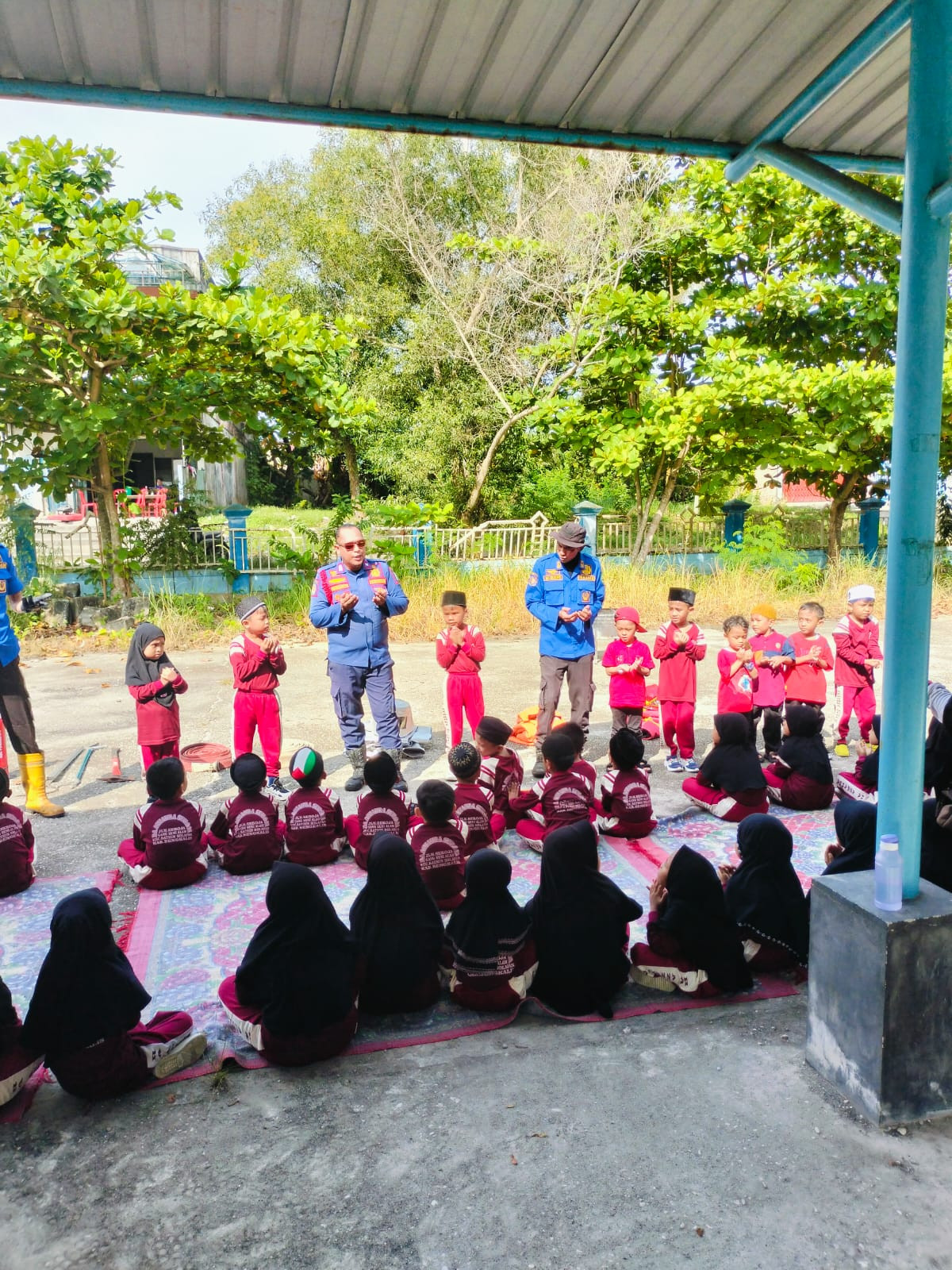 Dihadapan anak-anak serta guru pendamping Petugas Pemadam Kebakaran mengatakan, saat usia dini inilah kita harus kenalkan kepada anak-anak tentang perlunya kewaspadaan dini setiap saat, terutama kewaspadaan terhadap musibah kebakaran.